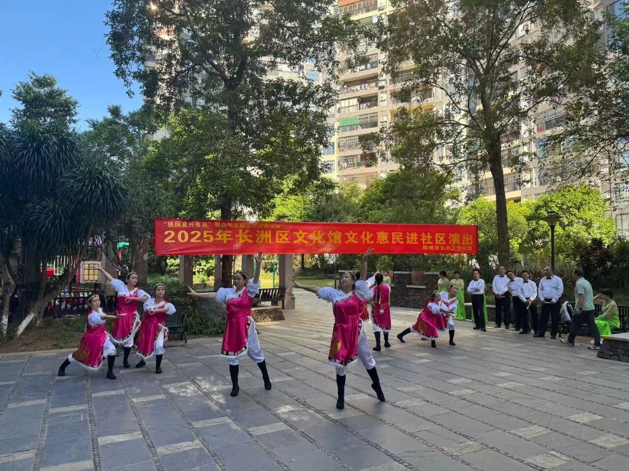 为传承和弘扬中华民族优秀传统文化,提升群众生活幸福感,把文艺精品节目送到基层、送到群众家门口,近日,由梧州市长洲区文化馆主办、长洲区幸福社区、金叶社区、两广社区承办的——2025年长洲区文化馆文化惠民进社区演出与2025年长洲区文化馆总分馆联动惠民演出分别在卡地亚小区、帝景湾小区、半山华府小区与市民群众见面。